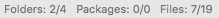 Counters are displayed at the bottom of a compare tab that provide feedback on number of folders, packages and files on each side.