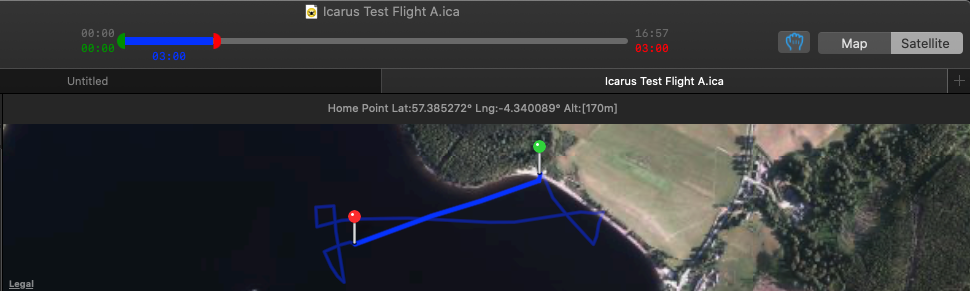 - Both of the pins can be dragged by selecting with the mouse and moving them, note that it is also possible to drag the flight path itself