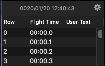 After importing a .csv file, the table will contain three columns which are Row Number, Flight Time and User Text.